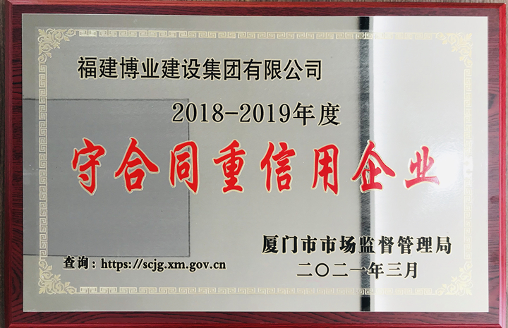 2018-2019年度厦门市守合同重信用企业